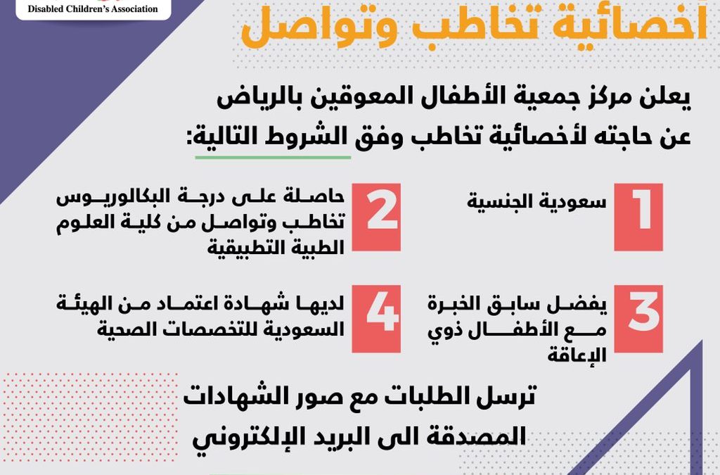 رواتب جمعية الاطفال المعوقين. تم إشهار جمعية رعاية الأطفال المعوقين و مقرها الرئيسي في محافظة مسقط وفقا للقرار الوزاري رقم1991 19م في 1991 5 8م وهي جمعية خيرية تطوعية غير ربحية. أبرم البنك الأول وضمن مبادراته المجتمعية الفاعلة اتفاقية تعاون مع جمعية الأطفال المعوقين تقضي بتبني برنامج دعم لأعمال ونشاطات الجمعية تحت عنوان برنامج مبادرتي يقدم البنك. جمعية الأطفال ذوي الإعاقة الجمعية الرائدة في العمل الخيري المؤسسي لمواجهة الإعاقة وتحجيم أثارها على الفرد والمجتمع وتأهيل الأطفال المعوقين لتجاوز سلبيات الإعاقة ومساعدة المجتمع في التصدي لأسبابها والتعامل. النشأة و الاهداف العنوان النشأة.