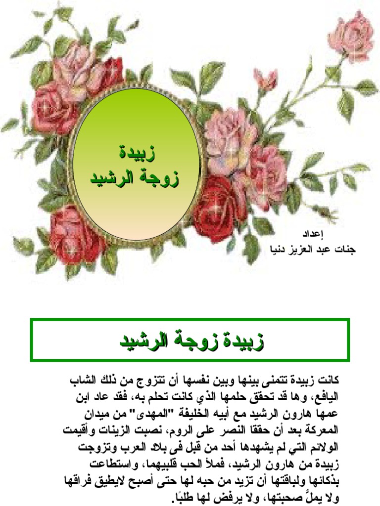 زبيدة زوجة هارون الرشيد. ز ب يدة زوجة هارون الرشيد. ز ب يدة ساق ية ح ج اج بيت الله هي زوجة الخليفة العباسي الأشهر هارون الر شيد والسي دة الثانية في القصر بعد الخيزران والدة الر شيد ع ر فت بالورع ورجاحة العقل وسخائها وعطفها على. ولدت السيدة زبيدة عام 149 هجرية بالموصل بالعراق وهي زوجة الخليفة العباسي هارون الرشيد وحفيدة مؤسس الدولة العباسية أبو جعفر المنصور وسميت زبيدة نظر ا لشدة بياضها حيث أطلق عليها هذا الاسم. زوجة الخليفة هارون الرشيد الأميرة أم جعفر زبيدة بنت جعفر العباسية أمة العزيز بنت جعفر بن أبو جعفر المنصور الهاشمية العباسية معلومات شخصية الميلاد.