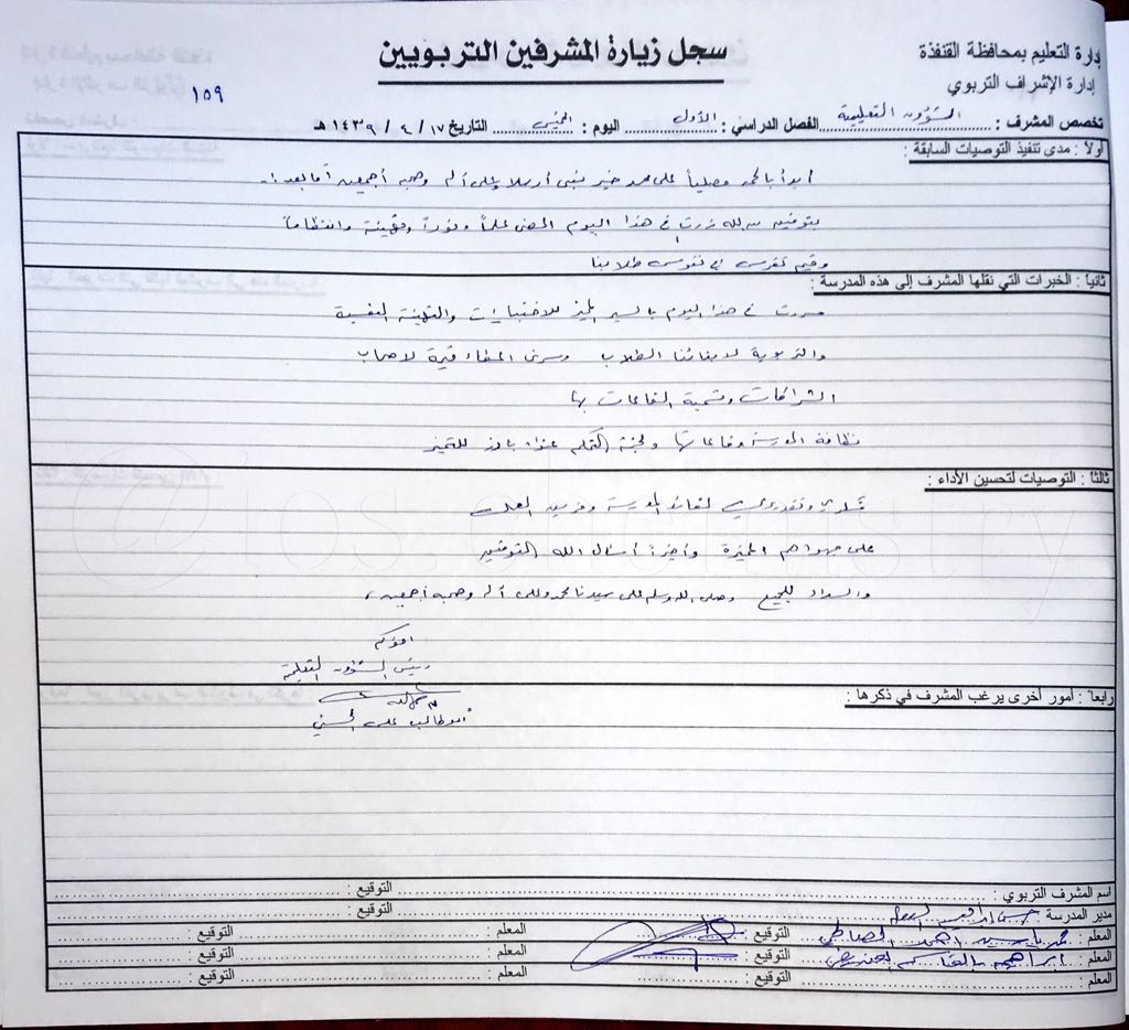 سجل متابعة توصيات المشرف التربوي. على المشرف التربوي قبل أن يقوم بتدوين الزيارة في سجل زيارات المشرفين ملاحظة الأمور الآتية 1 أن كتابة و تدوين الزيارة تعكس شخصية المشرف و مدى دقته و حسن اداءه لمهام عمله. اطلاع المشرف التربوي على جوانب التميز والقصور لدى المعلم. توصيات المشرفين الملفات المرفقة 10 متابعة توصيات المشرفين doc 69 0 كيلوبايت المشاهدات 13. تقديم جدول المعلم المزار خلال اليوم للمشرف التربوي الزائر.