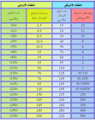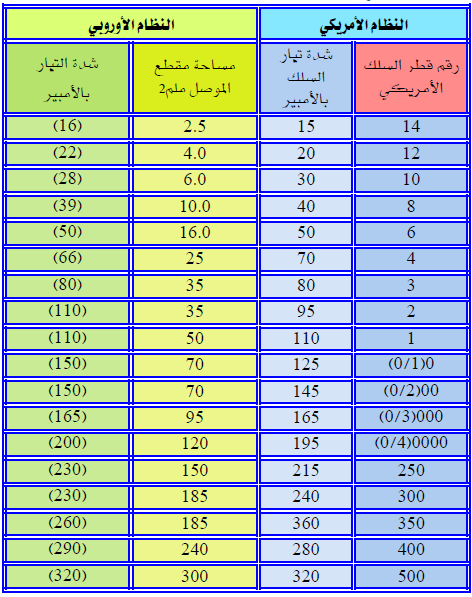 تعرف على مقياس الاسلاك بالنظام الاوربي وما يقابلها بالنظام الامريكي موسوعة الكهرباء والتحكم