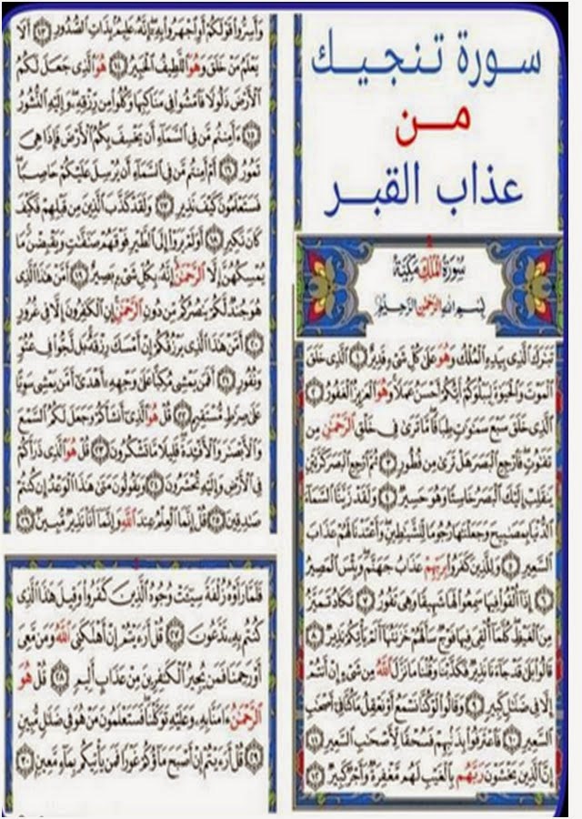 مواضيع سورة الملك سورة الملك سورة الملك وت عر ف أيضا بأن ها المنج ية. إن سورة في القرآن ثلاثون آية. نحن لا نستفيد بأي شكل مادي من هذه القناة إنما هي لوجه. فضل قراءة سورة الملك قبل النوم لقراءة سورة الملك العديد من الفضائل التي تعود بالخير على المسلم 1 فهى مانعة لعذاب القبر ومنج ية لم ن يحافظ ويداوم على قرائتها في ليلته قبل نومه.