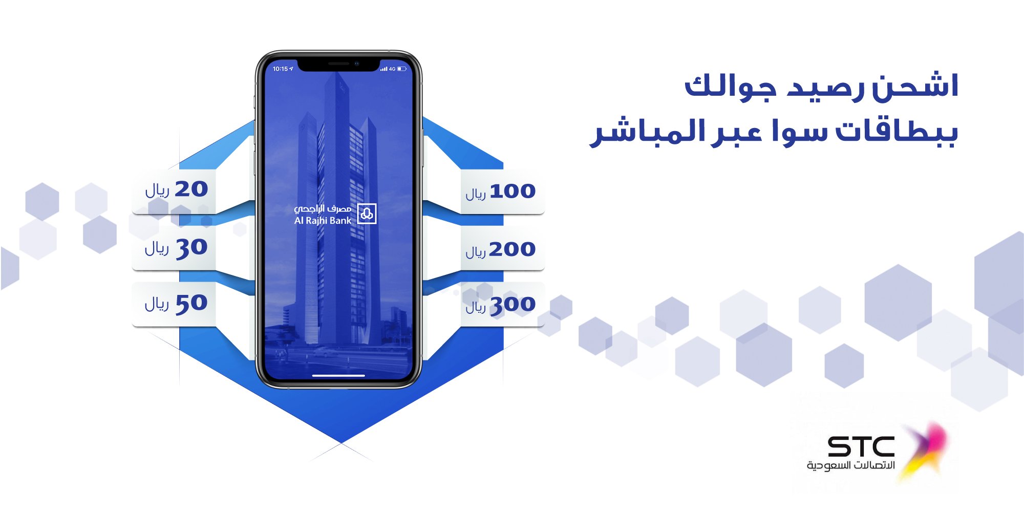 طريقة شحن stc عن طريق مباشر الراجحي وفيما يلي نقدم لكم كيفية شحن الرصيد سوا من خلال تطبيق الراجحي من خلال تطبيق الخطوات التالية. يبحث العديد من الناس عن كيفية شحن رصيد سوا من خلال تطبيق الراجحي في المملكة السعودية والتي نعرضها عليكم من خلال النقاط التالية. شحن بطاقة سوا عبر تطبيق الراجحي من الموضوعات التي تكثير فيها التساؤلات من عملاء شركة الاتصالات السعودية لما يقدمه من خدمات مميزة بالمشاركة مع بنك الراجحي والتي لاقت استحسانا كبيرا من العملاء في البنك ونتناول في. قم بالدخول لحسابك عن طريق الراجحي مباشر للأفراد.