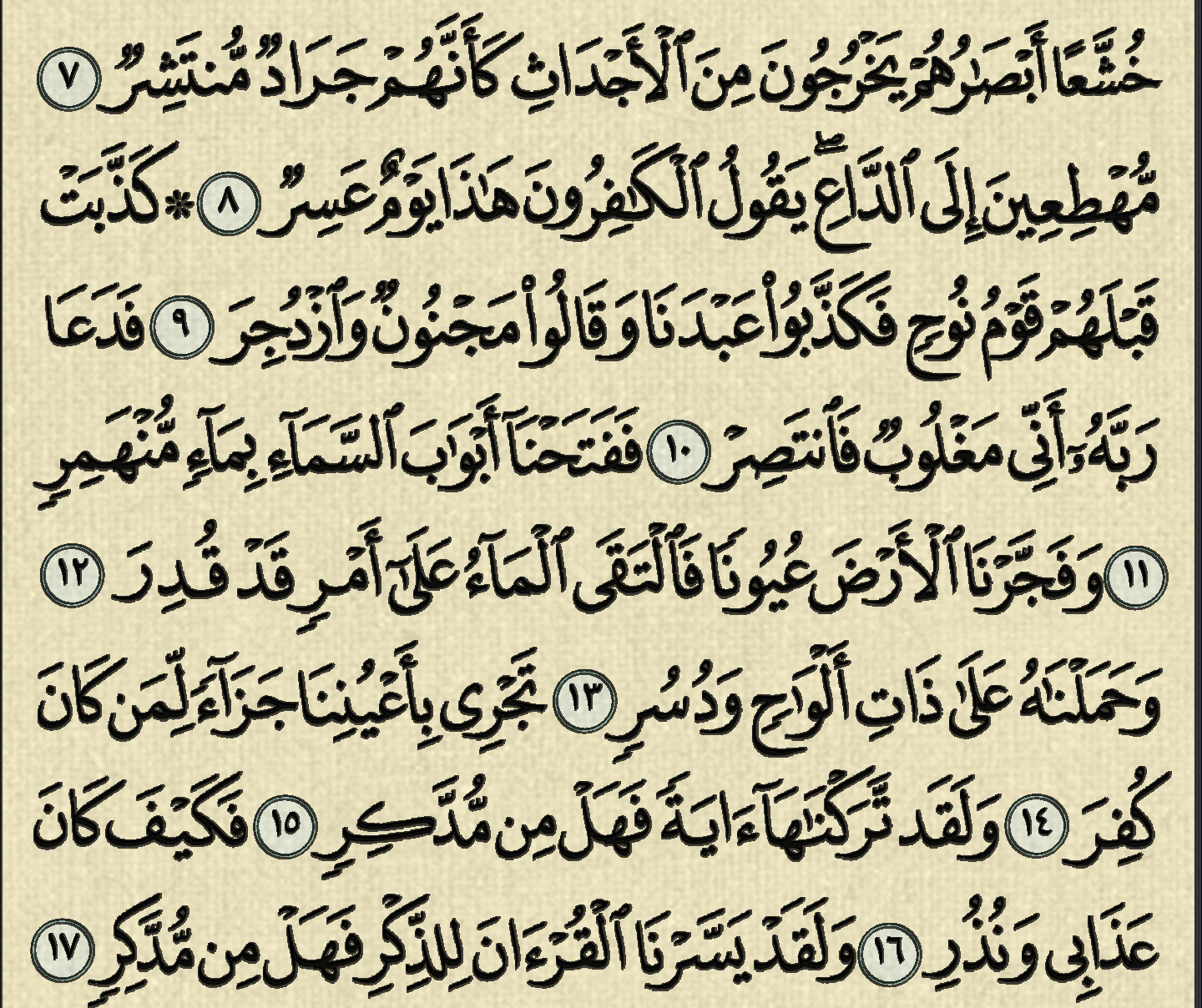 شرح وتفسير سورة القمر Surah Al Qamar من الآية 1 إلى الآية 17 معاني الأسماء ومعاني الكلمات وتفسير القرآن الكريم