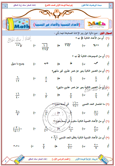 مراجعة الوحدة الأولى الاعداد الحقيقية حيث تتضمن هذه الأوراق مراجعة للدروس الأعداد النسبية القوى والأسس ضرب أحاديات الحد وقسمتها الخ الفصل الاول منتديات صقر الجنوب