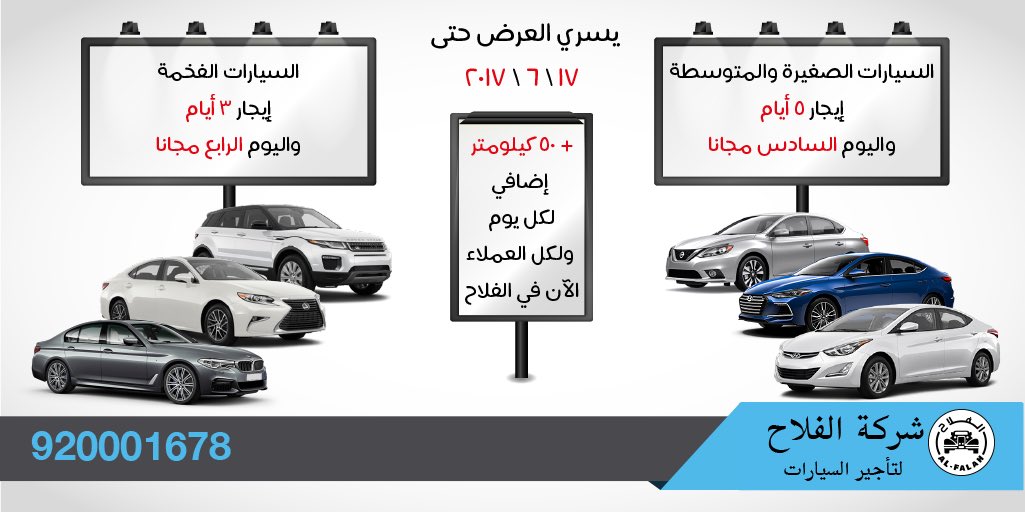 فرع الملك فهد 1 طريق الملك فهد قبل شركه زين مقابل مكتبه الملك فهد الوطنيه. شركة الفلاح لتأجير السيارات الرياض. تبنت شركة الفلاح لتأجير السيارات شعارا لها الفخامة والرفاهية وتعمل على تحقيق ذلك من خلال توفير أفضل السيارات العالمية الحالية وبسعر معقول لكافة فئات السيارات. تاجير سيارات افراد وشركات احدث السيارات وافخم الفئات الفروع منتشرة على مستوى المملكة.