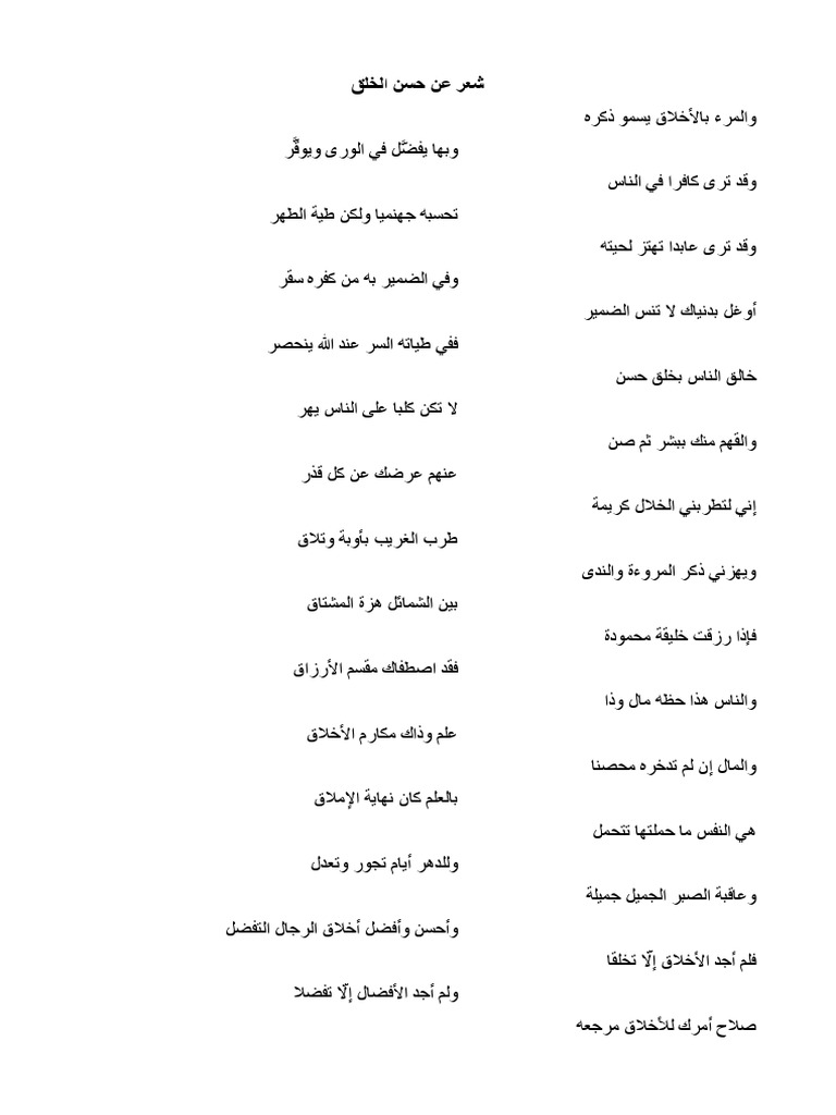 شعر عن الأخلاق لمحمود الرصافي. إن النفاق هو زيف أخلاقي يبرهن على قيمة الأخلاق الصحيحة. سئل رسول الله صلى الله عليه وسلم عن أكثر ما يدخل الناس الجنة فقال. شعر عن حسن الخلق.